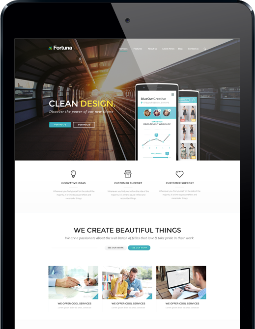 Fortuna features a characteristic clean, modern design along with a wide variety of theme options so you will always be unique. Fortuna has a rocksolid backend functionality and is a heavy weight lifter by all standards.